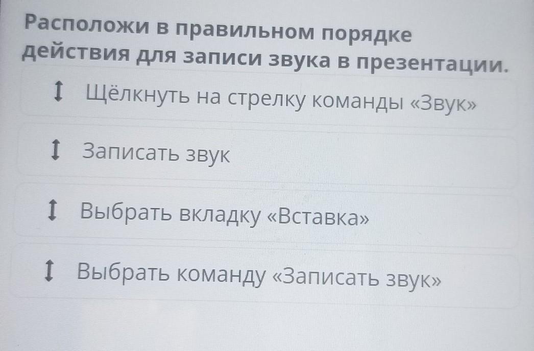 2) Щёлкнуть на стрелку команды{{звук.}}