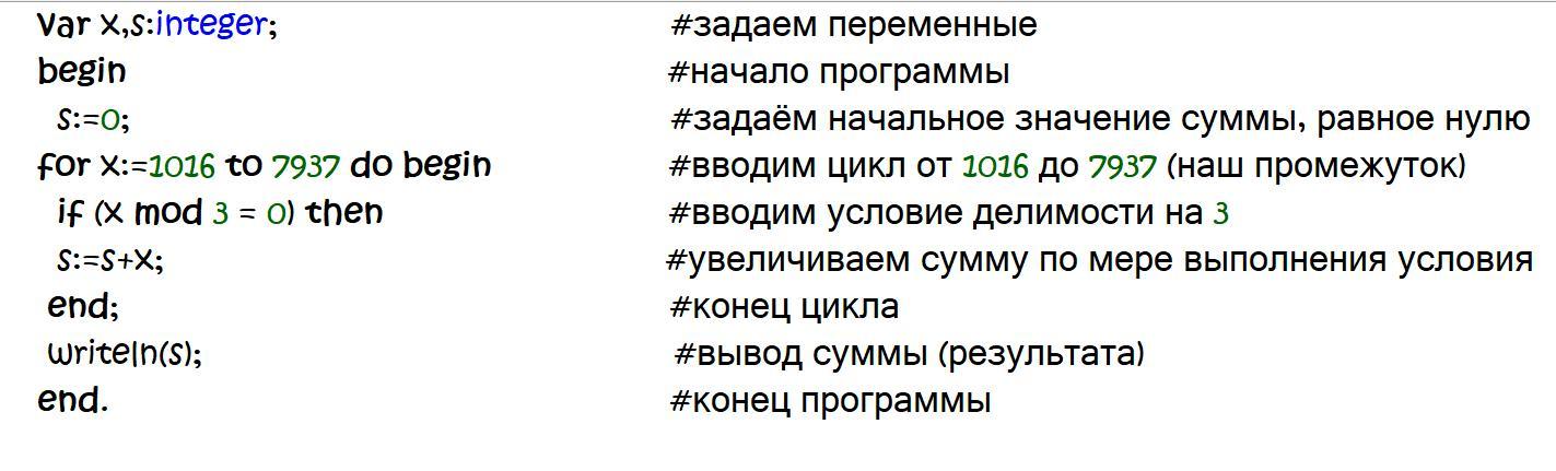 рассматривается множество целых чисел, принадлежащих отрезку [1016;7937] который делятся на 3 найдите сумму таких чисел помогите пж