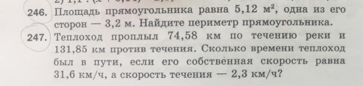 2) Для начала найдем время, за которое он проплыл по течению, для этого суммируем скорость теплохода и течения речки, а затем поделим пройденное расставание на сумму теплохода и течения: