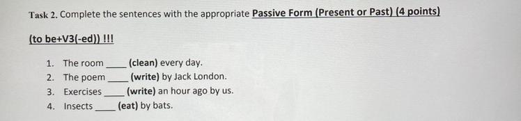 - 3)Exercise to be writed an hour ago by us.