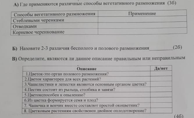 Б)1) В бесполом размножении участвует один организм, а в половом – два. 2) В бесполом размножении участвуют соматические клетки, размножающиеся митозом, а в половом – половые клетки (гаметы), полученные путем мейоза.
