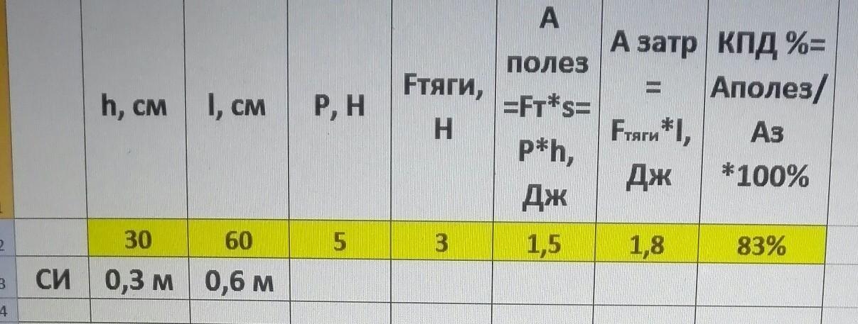 d) Определите коэффициент полезного действия наклонной плоскости. η =_______________
