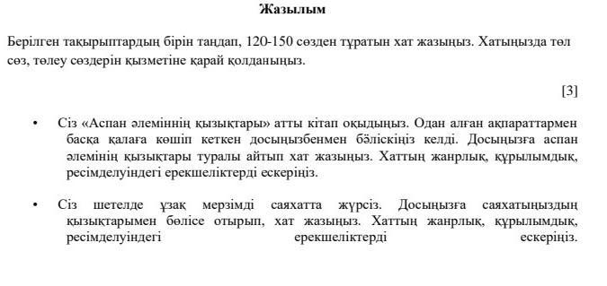 2 берілген тақырыптардың бірін таңдап 120 150 сөзден тұратын хат жазыңыз қазақ тілі 5 сынып тжб