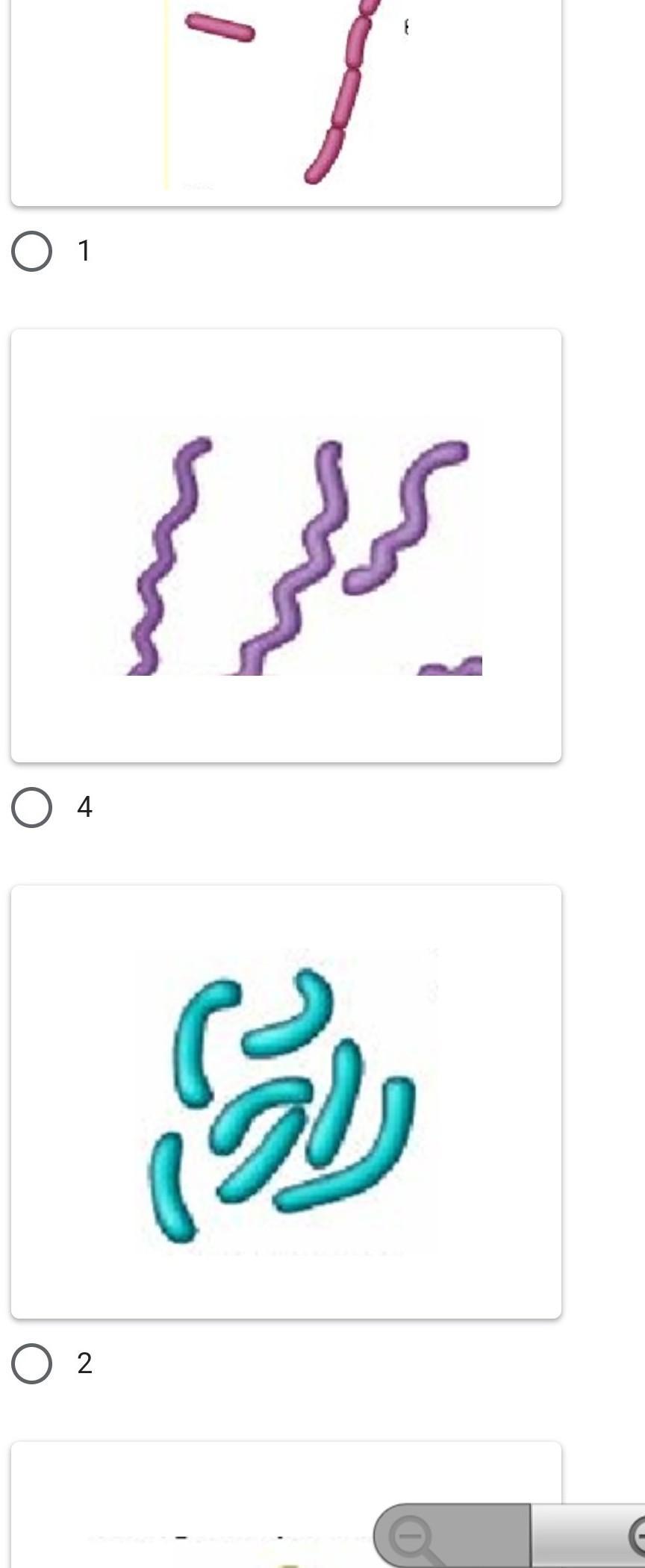 Существуют четыре основные формы бактериальных клеток. Определите изображение вибриллы
