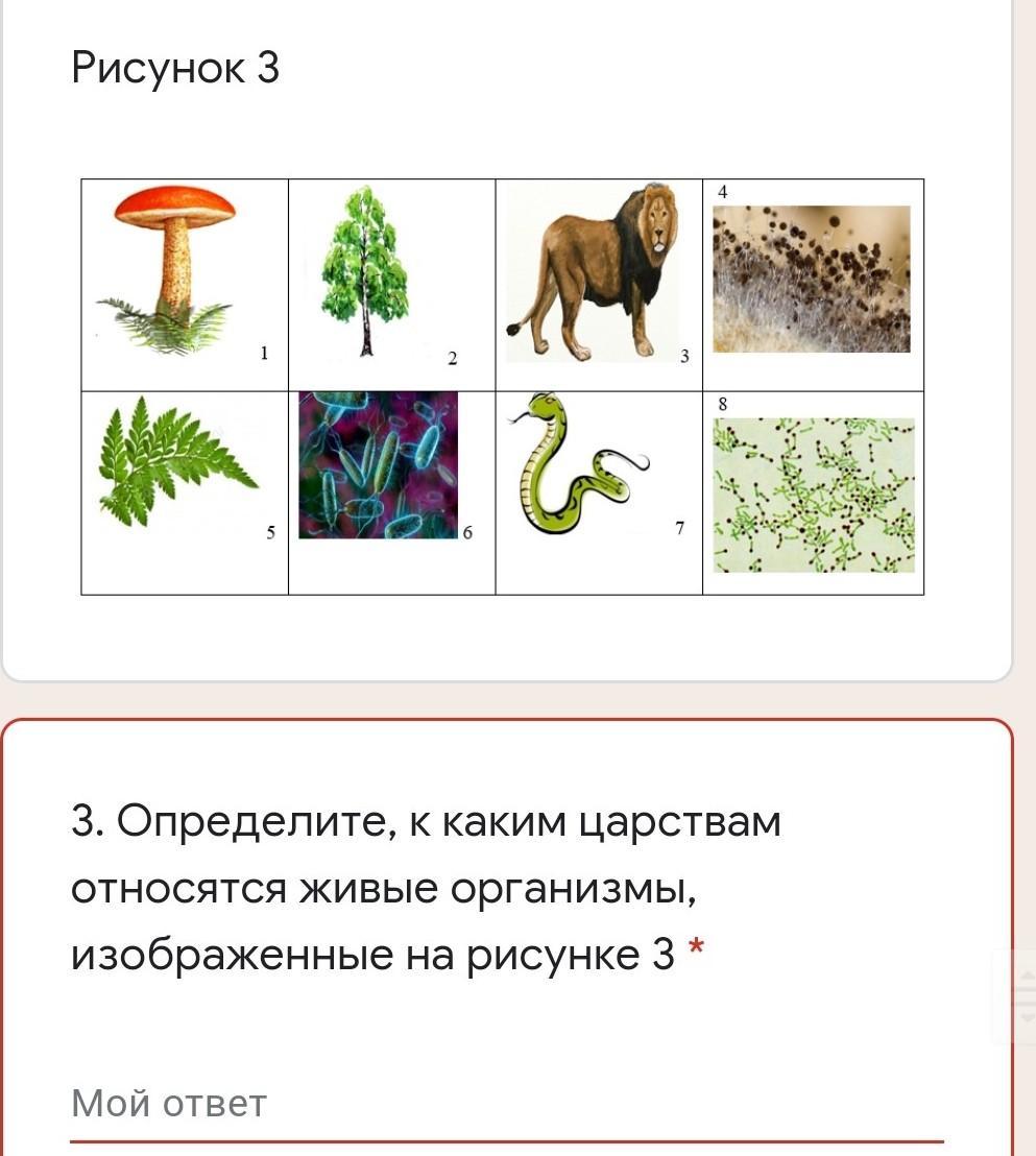 Определите, к каким царствам относятся живые организмы, изображенные на рисунке 3 *