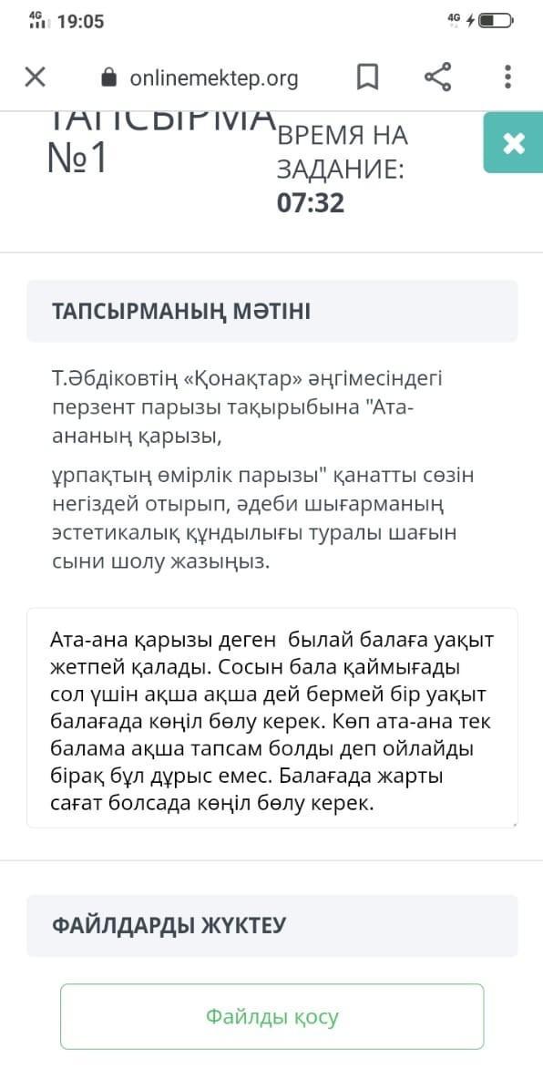 Телен Әбдіктің "Қонақтар "әңгімесінің идеясымен "Перзент парызы" тақырыбында “Ата-ананың қарызы, ұрпақтың өмірлік