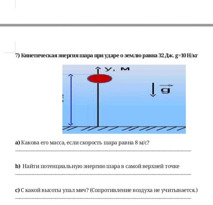 Кинетическая энергия шара при ударе о землю равна 32 Дж. g=10 Н/кг