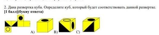 потому что черный круг при сборке окажется сверху , соответственно жёлтый круг снизу, это значит что вариант б у нас не может быть, рассматривая дальше, можно понять что 2 стороны которые нам будут видны будут жёлтые , а тоесть. это не вариант с, и таким образом мы получили а