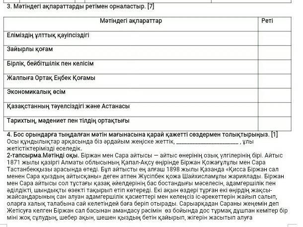 Мәтін қайда? Тапсырмада мәтіндегі ақпарат деп тұр ғой..