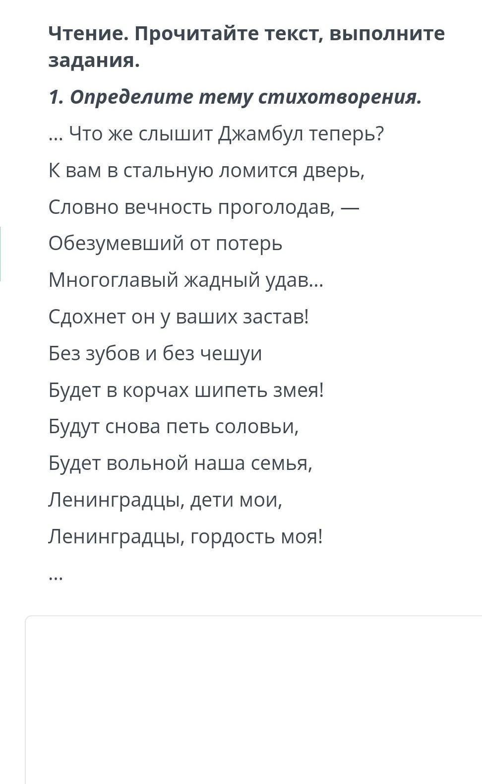 правильный ответ это стихотворение о блокаде??? просто скажите это правильный ответ ? пожалуйста отправьте!!!!