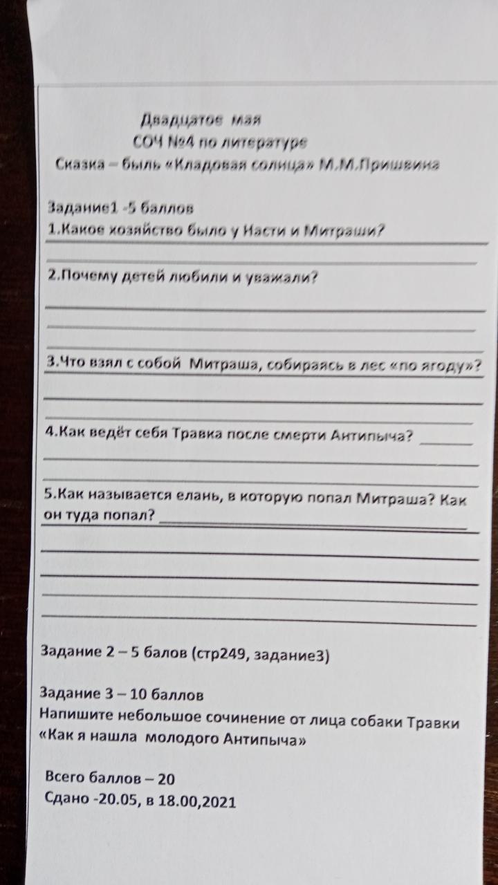 Соч по литературе по сказке М.М Пришвина "Кладовая Солнца"