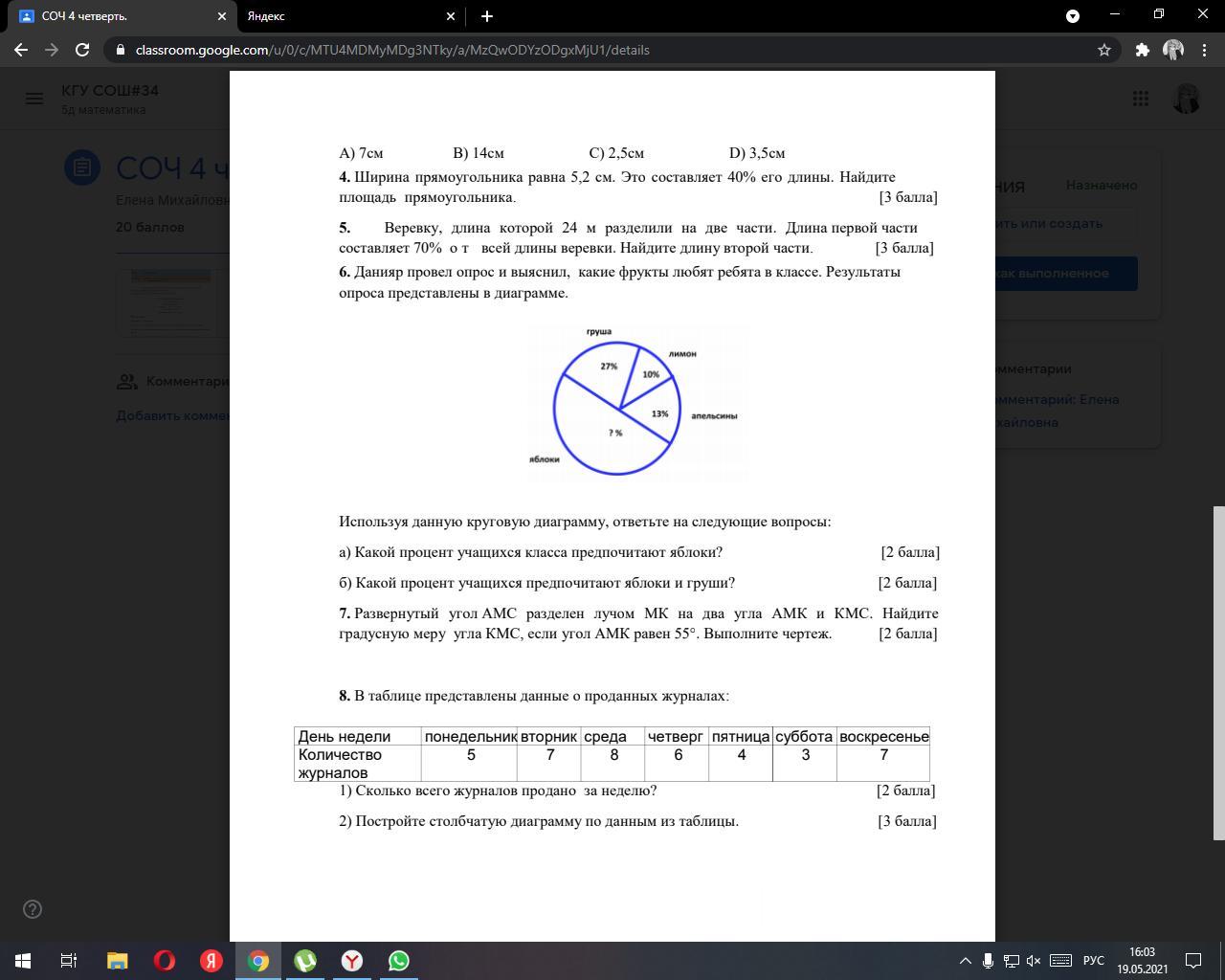 8) 40 журналов за всю неделю (построишь столбчатую диаграмму по данным из таблицы)