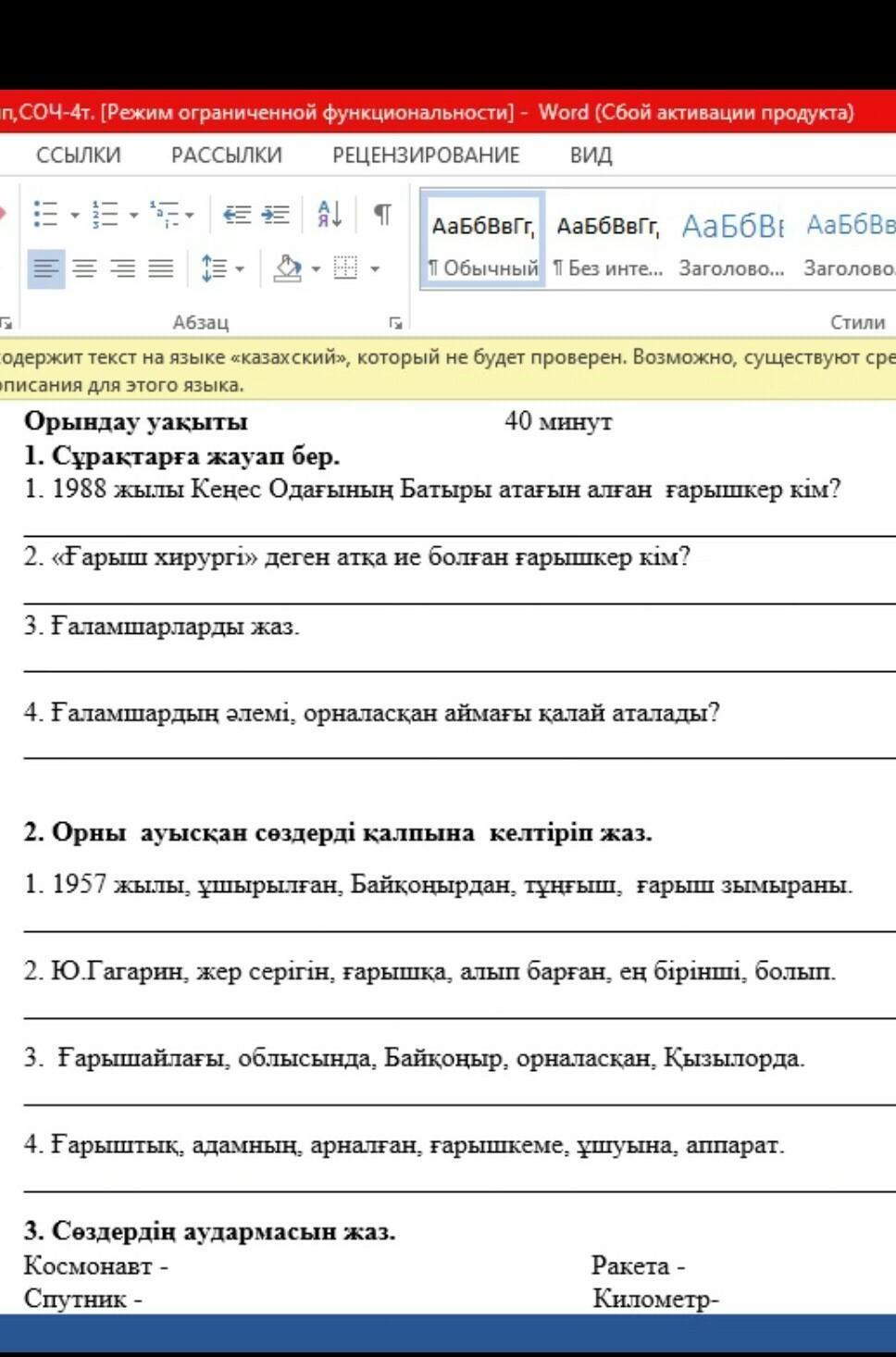 2. Ю.Гагарин ең бірінші болып жер серігін ғарышқа алып берген.