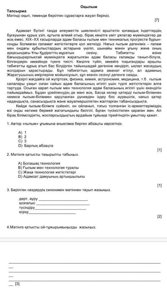 Қосымша ақпарат:1. Ғылым мен технологияның дамуынан қорықпау керек.
