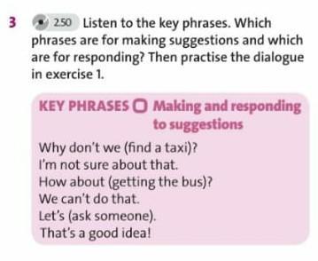 Listen to the key phrases. Which phrases are for making suggestions and which are for responding? Then practice the dialogue in exercise 1.СРОЧНО ПЖ
