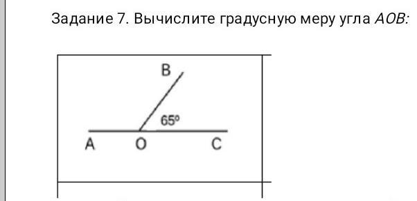 Отрезок АОС - равен 180*, чтобы найти угол АОВ вычтем угол ВОС, который равен 65*, получим 180*-65*= 115*