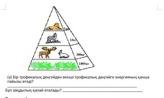 Бұл заңдылық қалай аталады? Жауабы:Экологиялық пирамидадағы энергия мен заттардың ауысуы