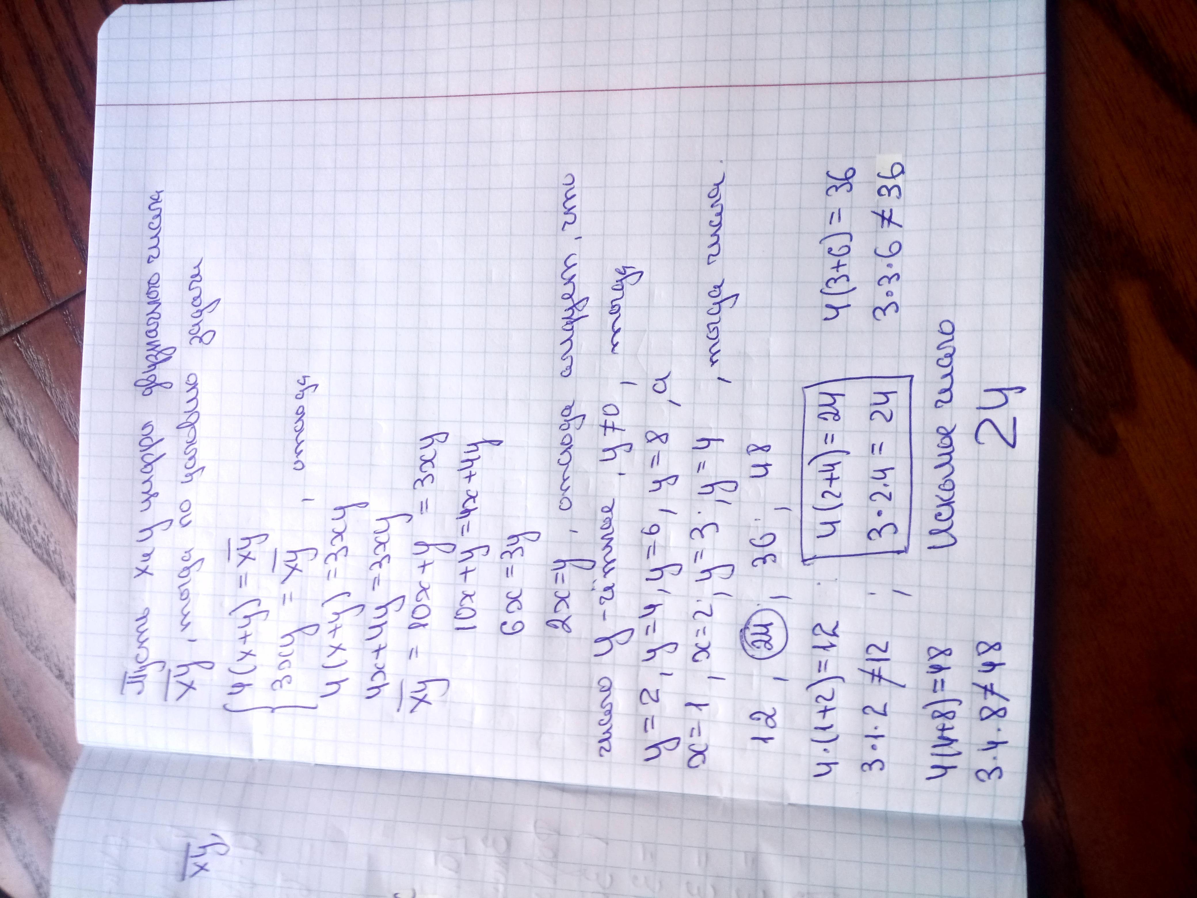 сумма цифр двузначного числа в 4 раза меньше самого числа,а произведение цифр в три раза меньше этого числа. Найдите это число.