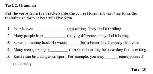 Put the verbs from the brackets into the correct form: the verb+ing form, the