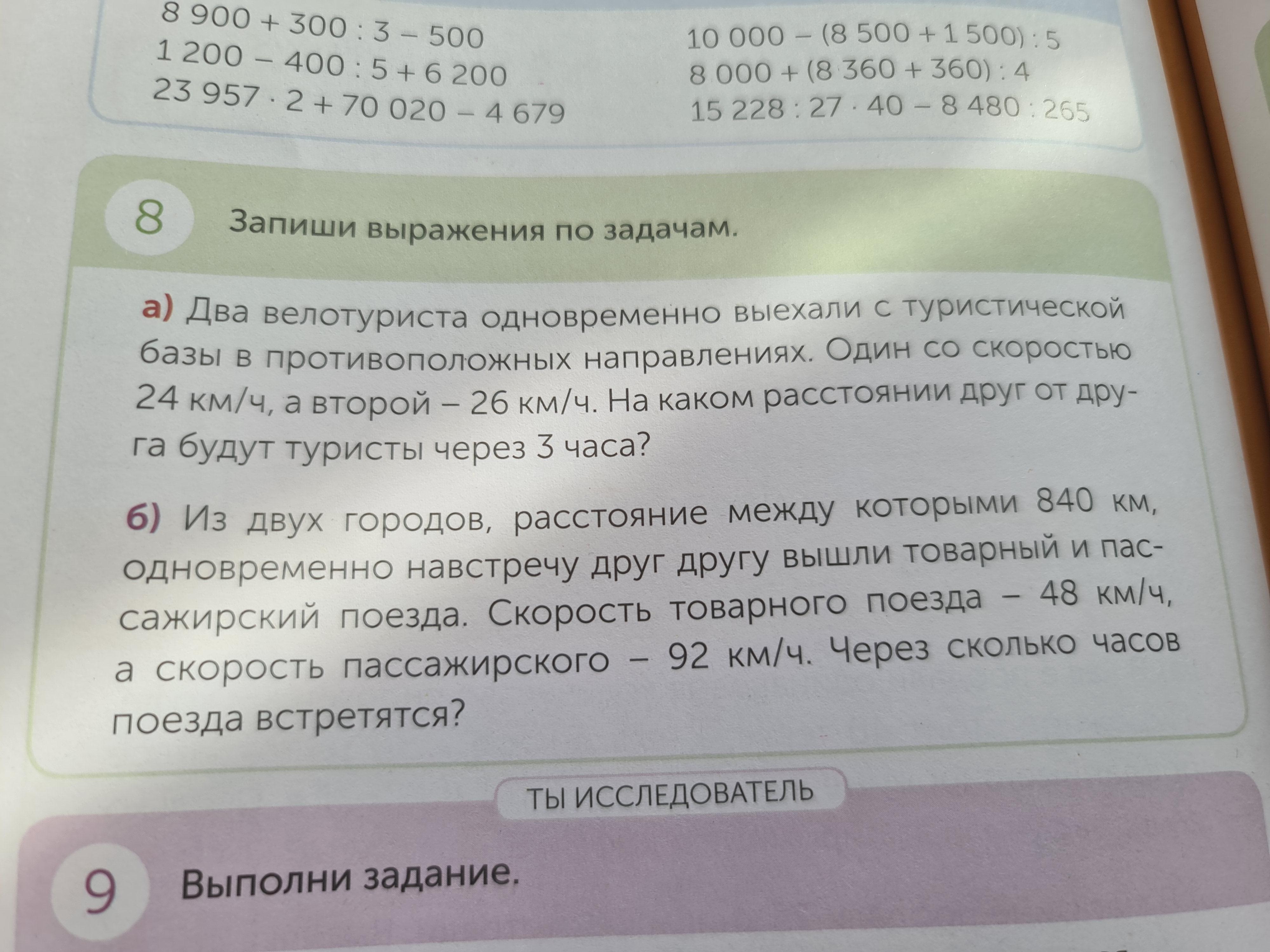 вторым действием находим расстояние между велотуристами через 3 часа: