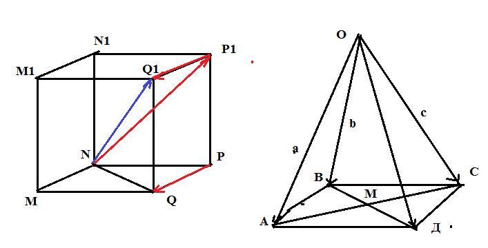 3. Основанием пирамиды с вершиной O является параллелограмм ABCD,диагонали которого пересекаются в точке M .Разложите векторы OD,BO и AM по векторам a=OA,b=OB и c=OC
