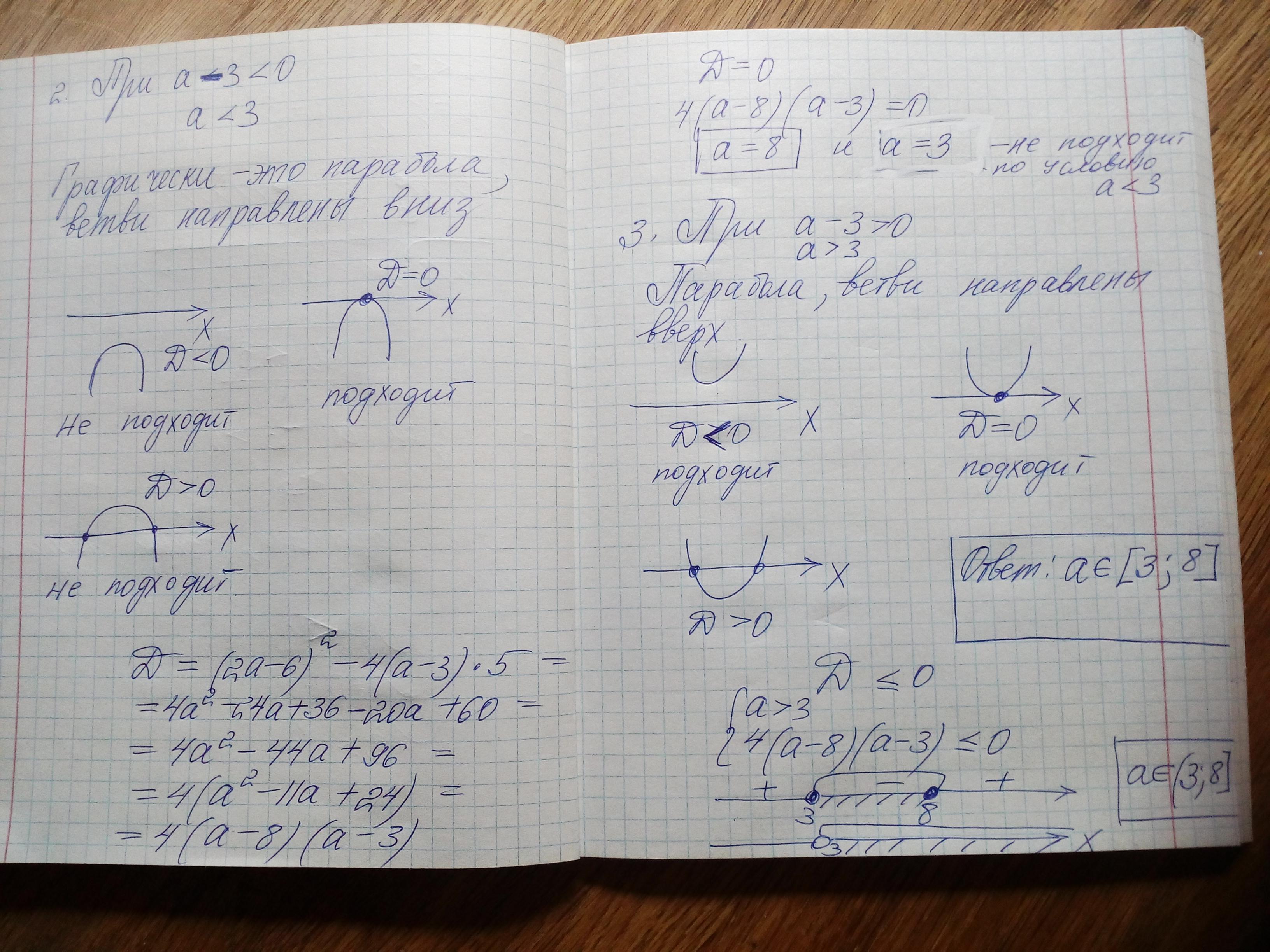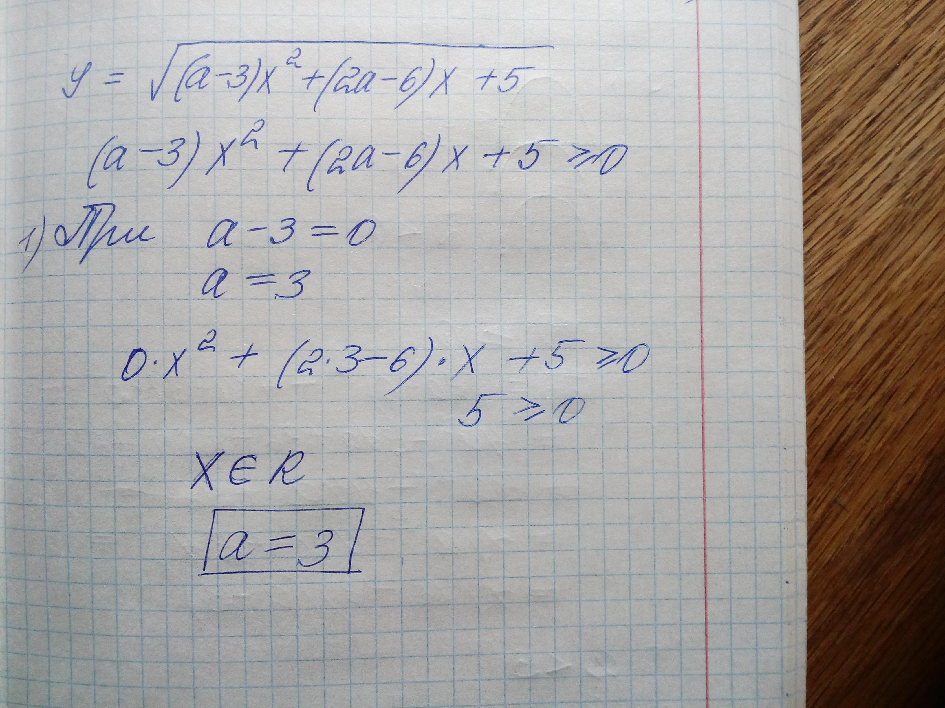 При каких значениях параметра a функция y=√(a-3)x²+(2a-6)x+5 определена при всех действительных значениях x