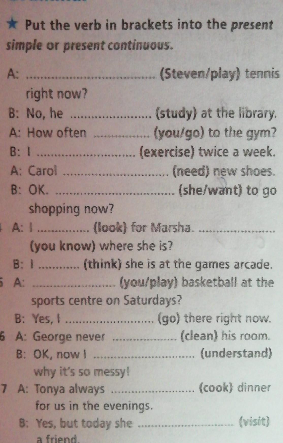 ПОМОГИТЕ ОЧЕЕЕЕНЬ СРОЧНО ПОЖАЛУЙСТА put the verb in brackets into the presen simple or present continue