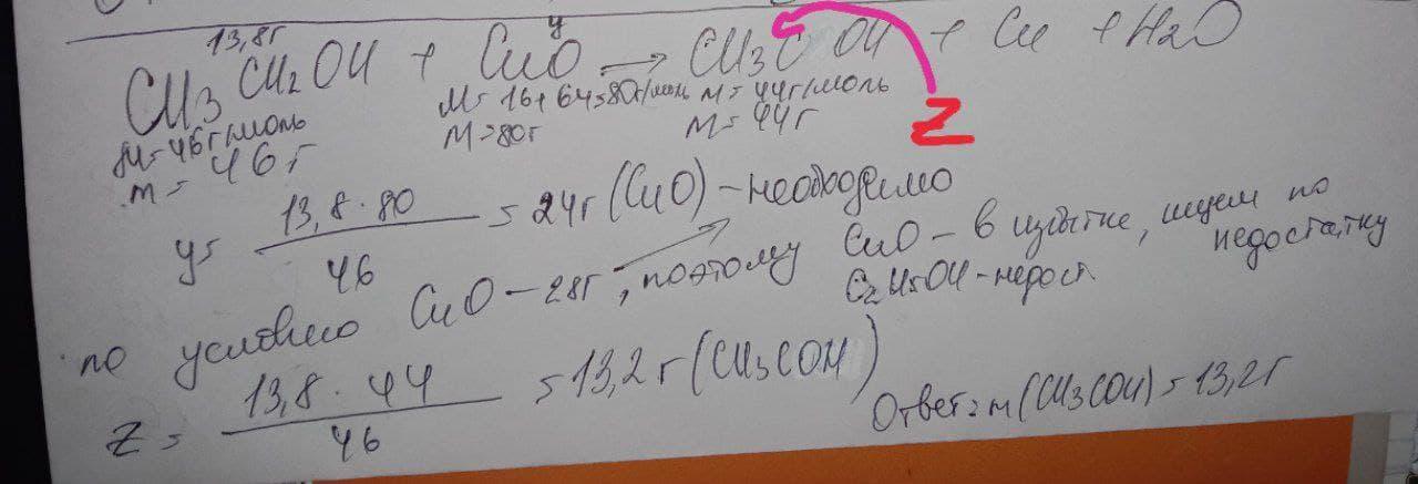 При взаимодействии этанола массой 13,8г с оксидом меди (II) массой 28г получили альдегид. Рассчитайте его массу.