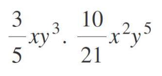 Ответ: 3/5 xy^3 * 10/21 x^2y^5= 2/7 * x^3y^8