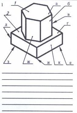 Ответ: б, ж, к) грани; в, е, и, з, д) рёбра; а,г) основания 1) шестиугольная призма; 2) прямоугольный параллелепипед