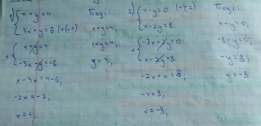 1) {x+y=4, 2) {x-y=0