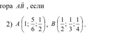 Коорд. вектора АВ , якщо А( 1; 5/6 ; 1/2 ) , В( 1/2 ; 1/3 ; 1/4 ) .