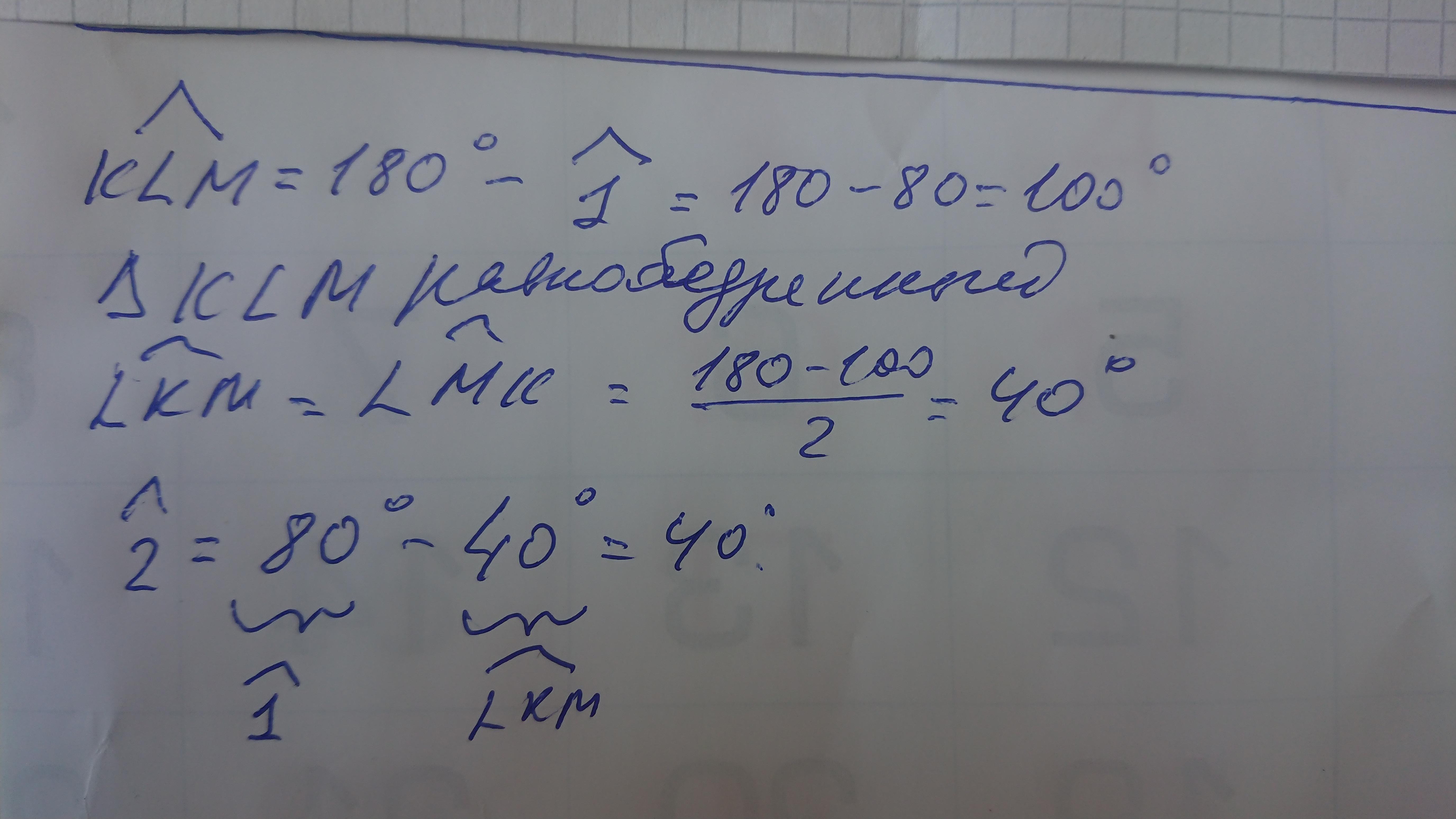 Дано: а || b; КL = LM, угол 1 = 80° (рисунок). Найти: угол 2