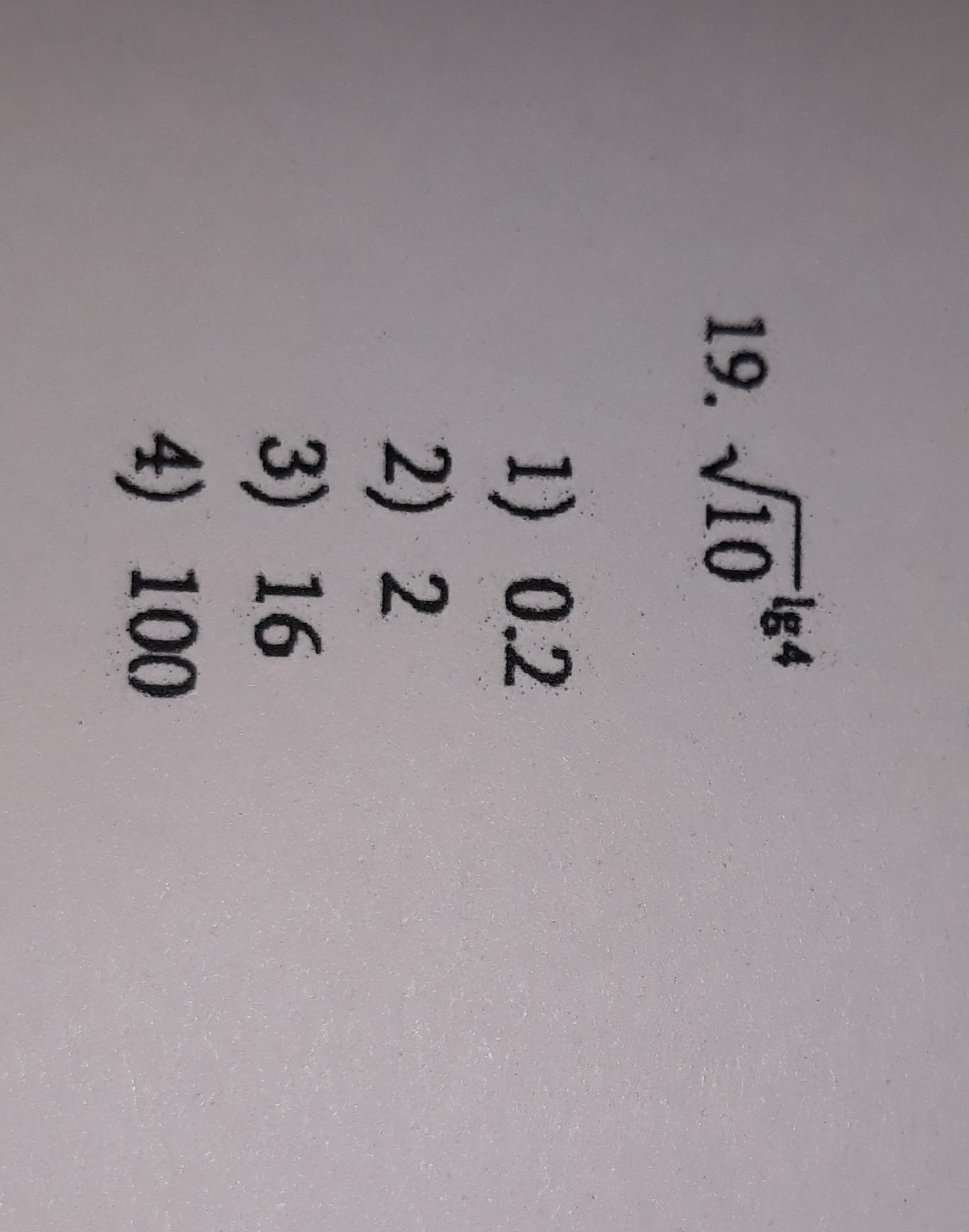 (√10 )^lg4 = ( 10^(1/2))^(lg4) = 10^(1/2 * lg4 ) = (10^lg4)^(1/2) = 4^(1/2) =√4 = 2 .