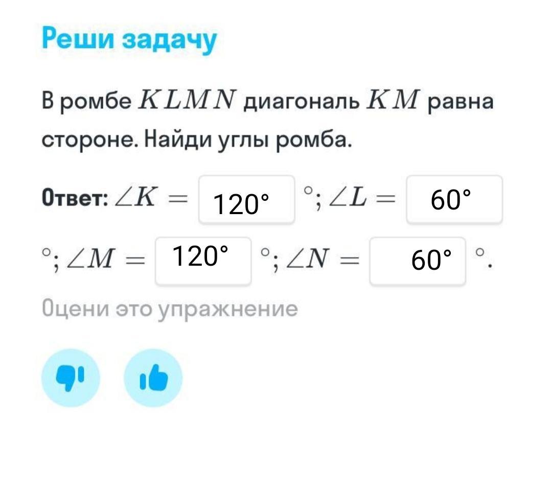 Меньшая диагональ равна стороне. При углах 120°; 60°.