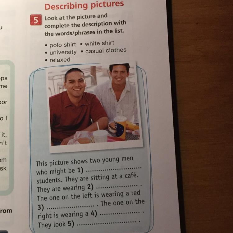 Ответ: 1. University 2. Casual clothes 3. Polo shirt 4. White short 5. Relaxed
