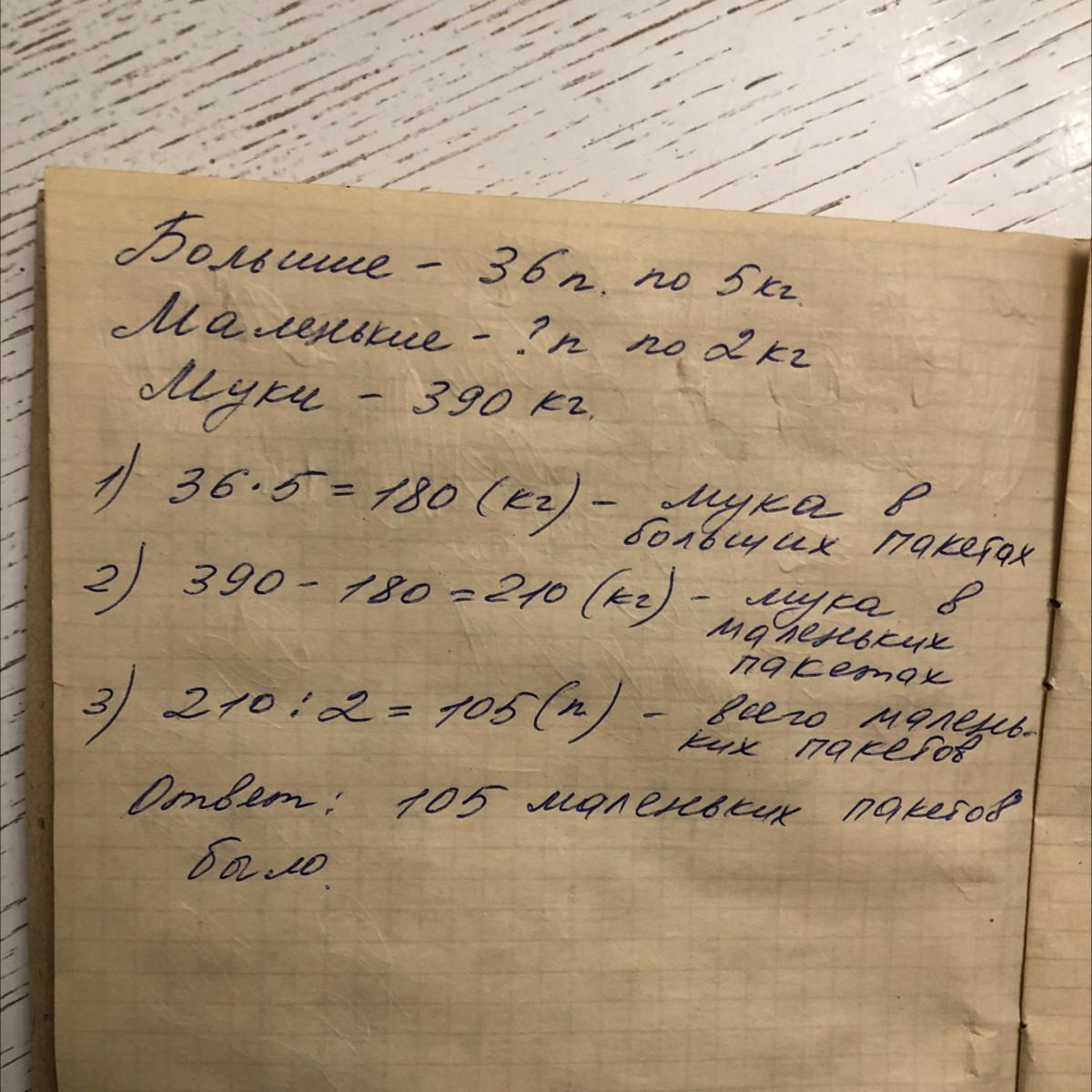 было по 5 кг муки. Сколько было маленьких пакетов,