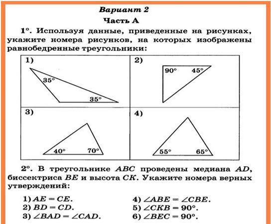 1. 1) Равнобедренный, так как два угла равны при основании.