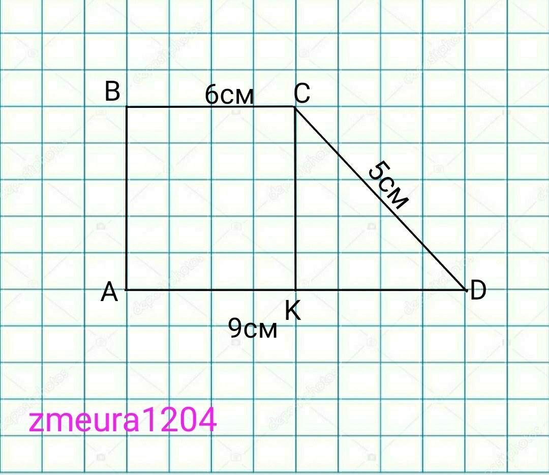 S=CK(BC+AD)/2=4(6+9)/2=4*15/2=30см²