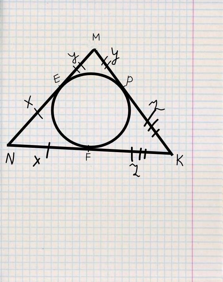 1)Если из точки к окружности проведены две касательные, то длины отрезков от этой точки до точек касания равны. Отсюда: