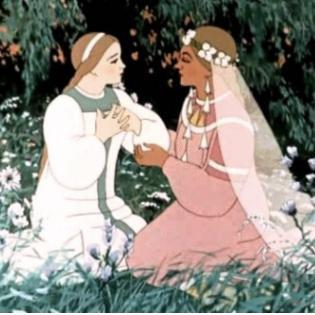 Весна надевает дочери волшебный венок, и говорит, что она всем сердцем полюбит первого, кого встретит.