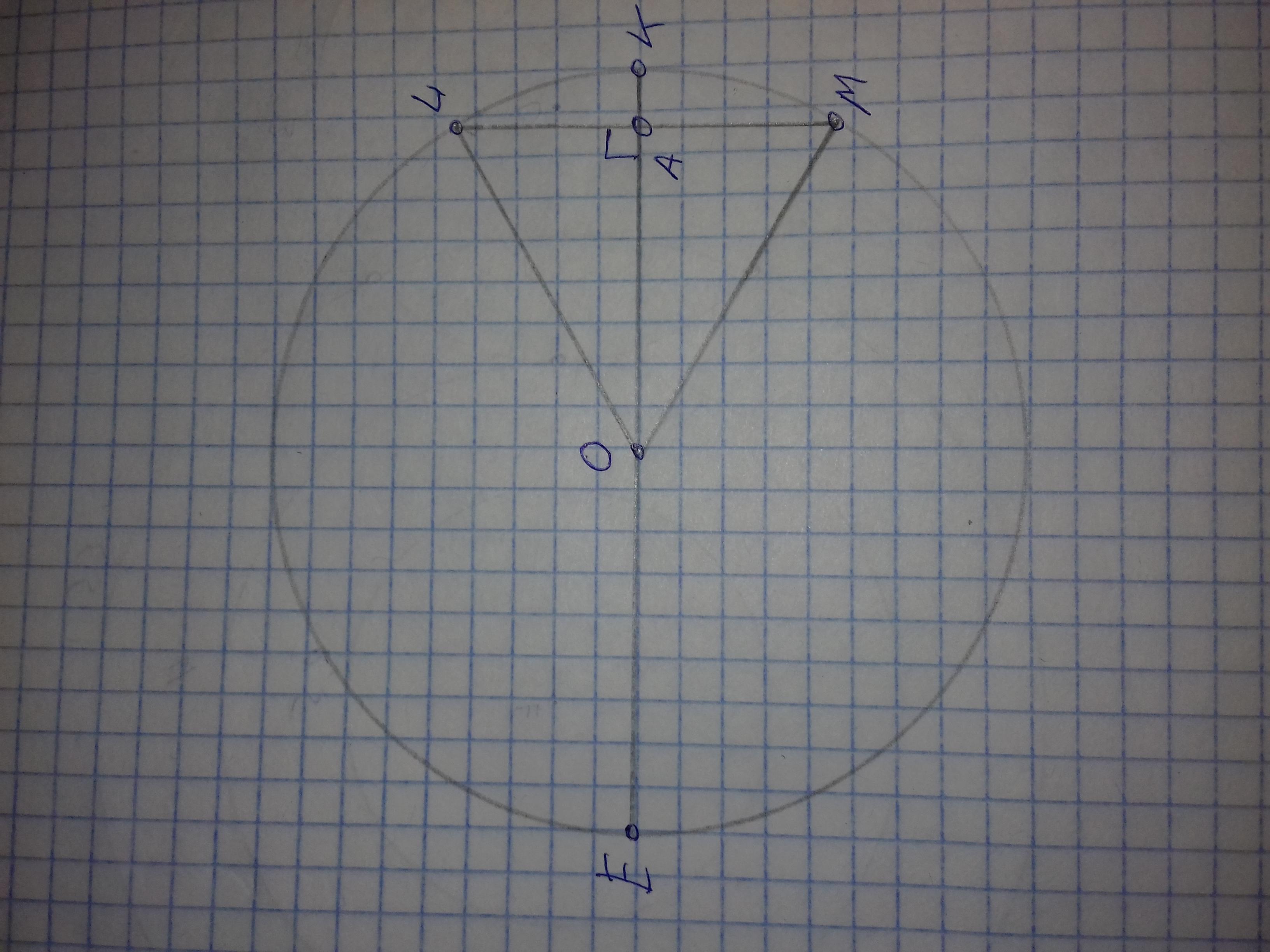 радиусу окружности, перпендикулярно проведен диаметр EK.