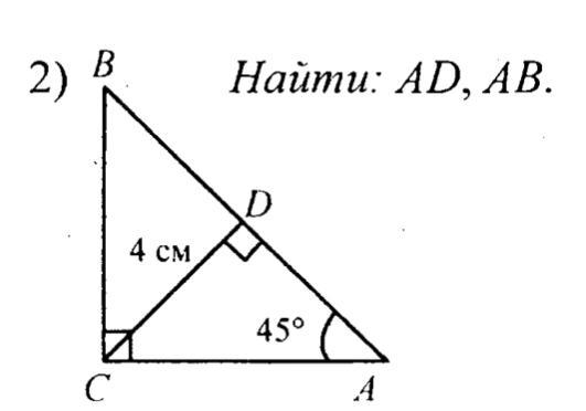 3) Известно, что в равнобедренном треугольнике высота, проведенная к основанию, является медианой и биссектрисой. Это значит, что AD=DB=4см.