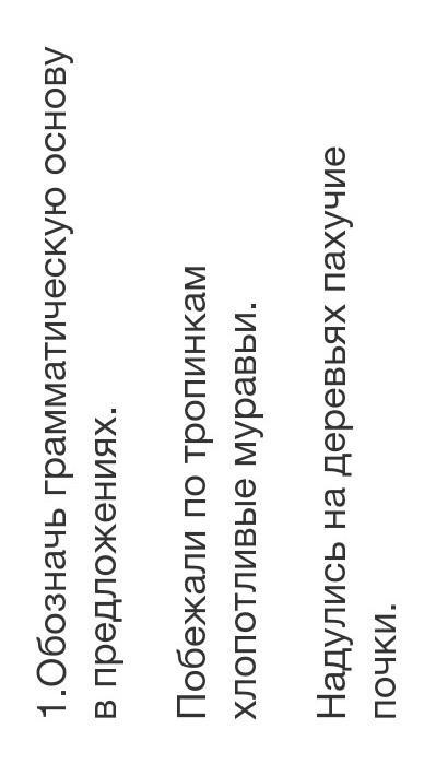Помогите пожалуйста там много балловГрамматическое задание 1.Обозначь грамматическую основу в предложениях. Побежали по тропинкам хлопотливые муравьи. Надулись на деревьях пахучие почки. 2 Разберите слова по составу. подкормка медвежонок ЛИМОННЫЙ заморозки лисенок