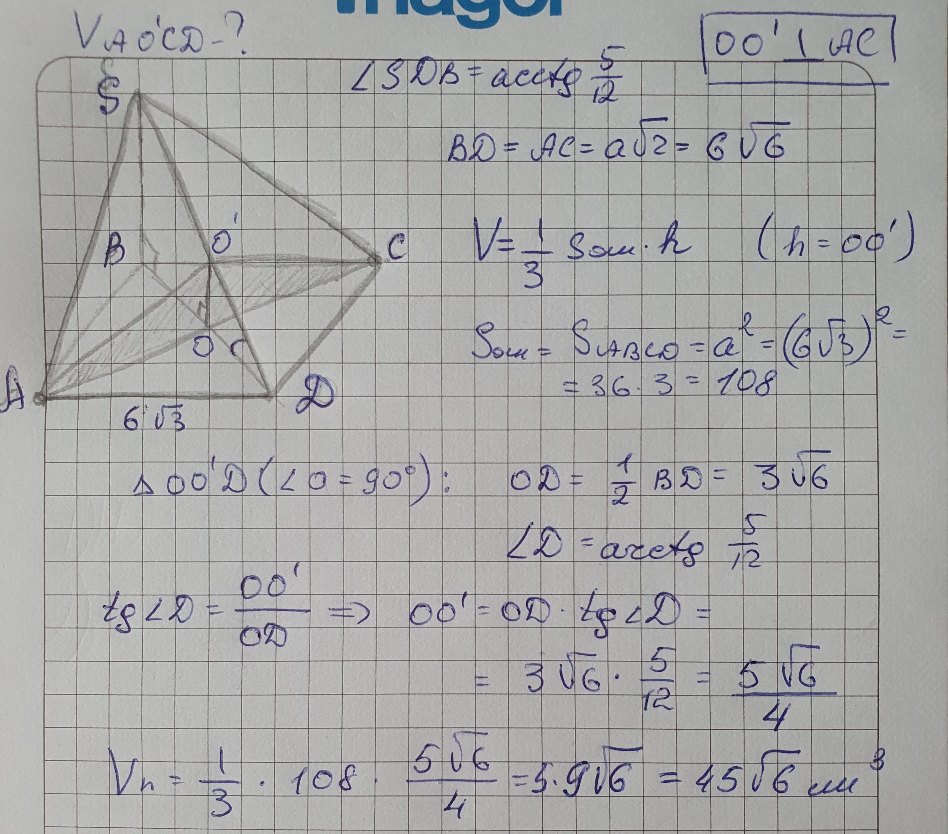 Найдём объём пирамиды АО1СД.