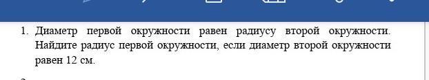 30б. Диаметр первой окружности равен радиусу второй окружности. Найдите радиус первой окружности, если диаметр второй окружности равен 12 см.
