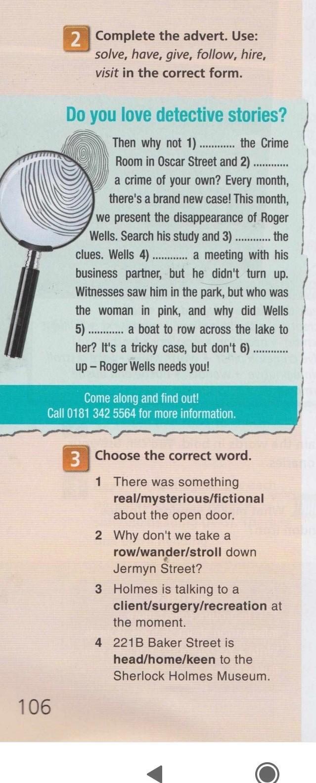 2. complete the advert. Use: solve, have, give, follow, hire, visit in the correct form.