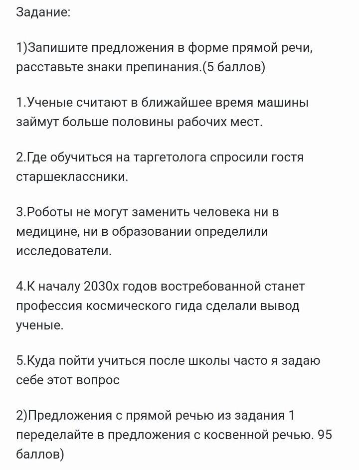 1)Запишите предложения в форме прямой речи, расставьте знаки препинания.(5 баллов)