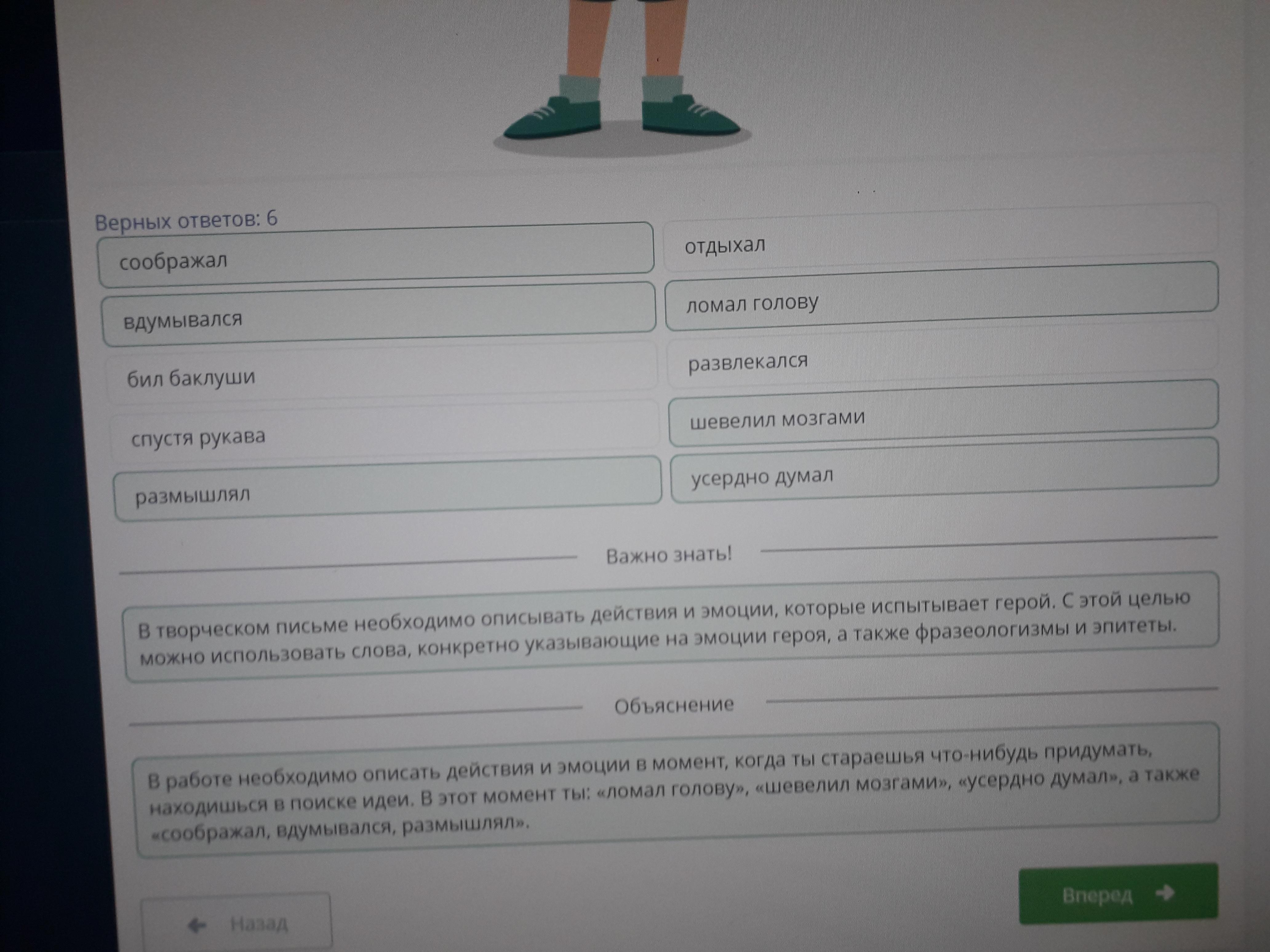 Учитель дал задание написать сочинение «Как я изобрел робота».Первая микротема - «Поиск идей».Укажи слова и словосочетания,которые помогут описать твои действия и эмоции.