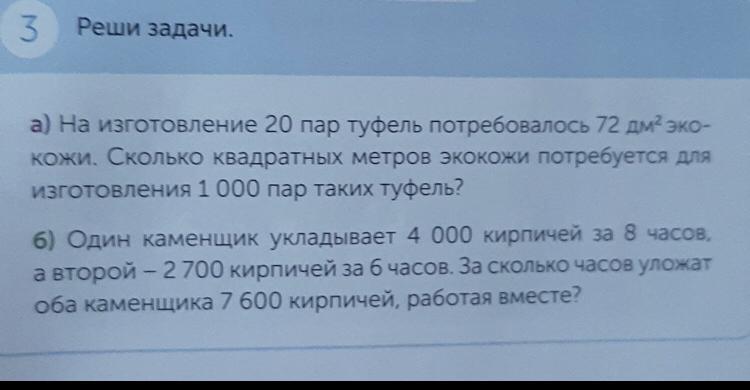 Сначала мы узнаём сколько потребуется на 1 пару туфель и потом это число мы ×1000 и у нас получается 3600дм² потребуется экокожи